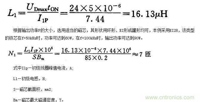 (4)一般來(lái)說(shuō),采用鐵氧體磁芯E128時(shí),要把Bm控制在3kGs以下。