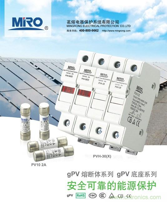 浙江茗熔電器生產(chǎn)的PV系列熔斷器是專(zhuān)門(mén)為保護(hù)太陽(yáng)能光伏(PV)系統(tǒng)而設(shè)計(jì)的,適用于光伏組件串和光伏方陣電能系統(tǒng)中光伏匯流箱的應(yīng)用;熔斷器能夠分?jǐn)喙收螾V陣列(反向電流、多排陣列故障)產(chǎn)生的較低過(guò)載電流,以保護(hù)和隔離光伏組列。該系列產(chǎn)品額定工作電壓DC 1000V,額定工作電流2A~30A的光伏電能系統(tǒng)中,具有全范圍分?jǐn)嗄芰Φ娜蹟囿w,額定分?jǐn)嗄芰C1000V/10kA。PV10光伏熔斷體由純銀帶/絲制成的熔體封裝于由高強(qiáng)度有機(jī)材質(zhì)制成的熔管內(nèi);熔管中充滿(mǎn)經(jīng)化學(xué)處理過(guò)的高純度石英砂作為滅弧介質(zhì);熔體兩端通過(guò)焊接與接觸帽(內(nèi)蓋)牢固電連接,內(nèi)置的絕緣隔離墊片,能滿(mǎn)足光伏熔斷器系統(tǒng)在極端使用條件下的應(yīng)用,確保性能更穩(wěn)定,表現(xiàn)更優(yōu)異、可靠。 產(chǎn)品符合IEC60269-6和GB/T 13539.6標(biāo)準(zhǔn)。熔斷體外形尺寸和基本性能與國(guó)內(nèi)外同類(lèi)型產(chǎn)品接近,故能作為國(guó)外引進(jìn)設(shè)備上同類(lèi)型熔斷體的替換。
