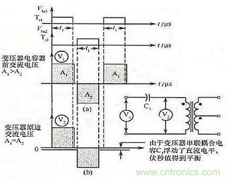 如果要這種不平衡的波形驅(qū)動(dòng)變壓器,將會(huì)發(fā)生偏磁現(xiàn)象,致使鐵心飽和并產(chǎn)生過大的晶體管集電極電流,從而降低了變換器的效率,使晶體管失控,甚至燒毀。