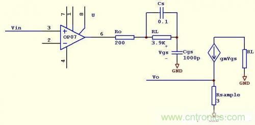 如果Cs》Cgs,則原有的極點(diǎn)po=1/2piRoCs由高頻段移至低頻段,頻率由Cs、Cgs和Rs決定,而非Cgs和Ro決定,新引入的零點(diǎn)zo也在低頻段并與po基本重合,兩者頻率差由Cgs與Cs的比例決定,因而很小。