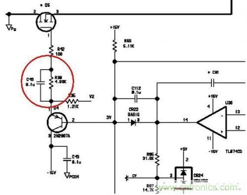 在此之前,如果看到C49和R39,恐怕很多壇友會很難理解其作用,然而這也正是體現(xiàn)模擬電路設(shè)計水平之處。有人感嘆36xx系列電路的復(fù)雜,然而內(nèi)行看門道,其實真正吃功夫的地方恰在幾只便宜的0805電阻和電容上,而非那些一眼即可看出的LM399、AD712之類的昂貴元件。