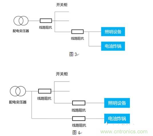 解決方法:發(fā)現(xiàn)問(wèn)題后解決就比較簡(jiǎn)單了,使大功率負(fù)載(電油炸鍋)單獨(dú)使用一條電纜后,問(wèn)題解決,如圖3、圖4所示。