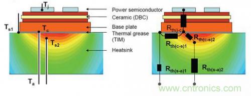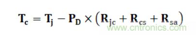 其中Tc為芯片的外殼溫度,PD為芯片在該環(huán)境中的耗散功率,Tj表示芯片的結(jié)點(diǎn)溫度,目前大多數(shù)芯片的結(jié)點(diǎn)溫度為150℃,Rjc表示芯片內(nèi)部至外殼的熱阻,Rcs表示外殼至散熱片的熱阻,Rsa表示散熱片到空氣的熱阻,一般功率器件用Rjc進(jìn)行計算即可。