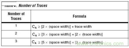 可以經(jīng)過(guò)這個(gè)區(qū)域布線(xiàn)的走線(xiàn)數(shù)量用表2進(jìn)行計(jì)算。
