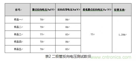 我們都知道二極管有個反向擊穿的極限電壓,絕大多數(shù)的二極管廠商都沒把它寫入數(shù)據(jù)手冊,但在大多數(shù)情況下為了節(jié)省成本不可能將二極管反向耐壓降額到50%左右使用,那么反向電壓裕量是否足夠,這對評估該二極管反向耐壓應(yīng)降多少額使用較為安全是有一定意義的。從下表中可看出,反向電壓的裕量并不像網(wǎng)上所說的那樣是額定反壓的2~3倍。