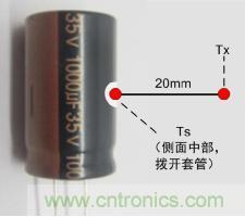 測(cè)量容體表面溫度Ts:需在電容器側(cè)面的中間位置進(jìn)行,如果由于外部影響導(dǎo)致電容器表面溫度不均勻、不穩(wěn)定,需綜合測(cè)量電容器表面4個(gè)點(diǎn)的溫度,再取平均值。