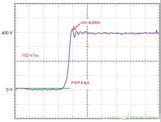 2.如通過優(yōu)化的驅(qū)動器設計的GaN開關(guān)波形所證明的,GaN可以非常高速的轉(zhuǎn)換速率工作,并且使交換節(jié)點上的振鈴最小。