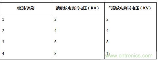 圖2:IEC 61000-4-2 ESD測試級別和安裝類別