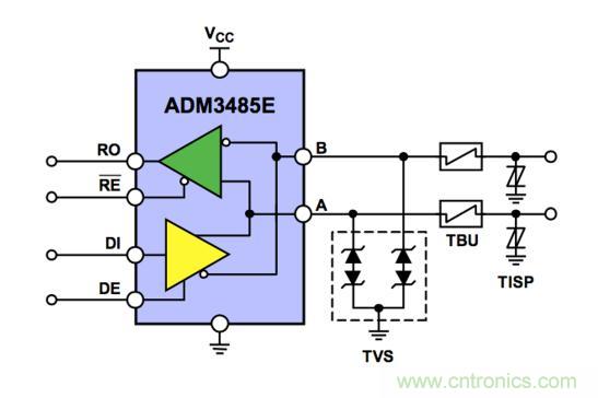 RS-485端口EMC方案相應(yīng)的規(guī)范要求實際上就是保護電路設(shè)計需要達到的目標。為了達成這樣的目標,自有其設(shè)計原則: