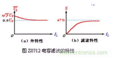 4. 電容濾波電路的外特性(指UL與IL之間的關(guān)系)和脈動(dòng)特性(指S與IL 之間的關(guān)系)比較差,如圖Z0712 所示??梢钥闯鲚敵鲭妷篣L和脈動(dòng)系數(shù)S隨著輸出電流IL 的變化而變化。當(dāng)IL=0(即RL= ∞ )時(shí),UL = U2(電容充電到最大值后不再放電),S = 0。當(dāng)IL增大(即RL減?。r(shí),由于電容放電程度加快而使UL下降,UL 的變化范圍在 U2 ~0.9 U2之間(指全波或橋式),S變大。所以,電容濾波一般適用于負(fù)載電流變化不大的場(chǎng)合。