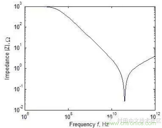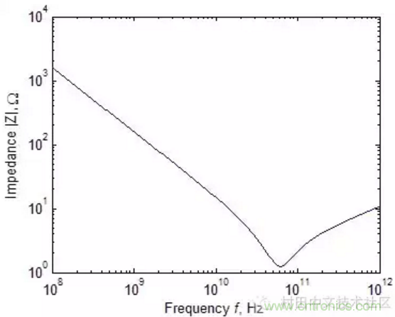 一個典型的1pF電容阻抗絕對值與頻率的關(guān)系