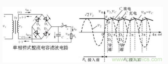 時電容放電,輸出下降。如此充電快,放電慢的不斷反復(fù),在負載上將得到比較平滑的輸出電壓。當負載電阻越大時,放電越慢,紋波電壓越小,負載電阻小時,放電快,紋波大,而且輸出電壓低。