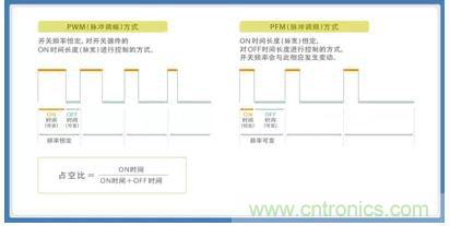 圖2:PWM(脈沖調(diào)幅)方式與PFM(脈沖調(diào)頻)方式