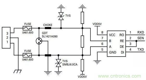 圖3:RS-485接口保護電路