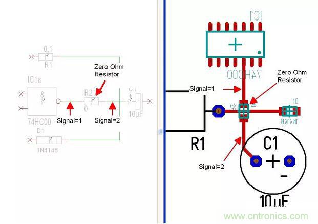 跳線?如果在研發(fā)的時(shí)候還可以,但有一天你的設(shè)計(jì)變成了產(chǎn)品需要大批量生產(chǎn)了,機(jī)器折騰起跳線來(lái)要比放置一個(gè)電阻麻煩的多了,這時(shí)候0Ω的電阻就幫你大忙了,根據(jù)你的空間,你可以選用0805、0603或0402的電阻。