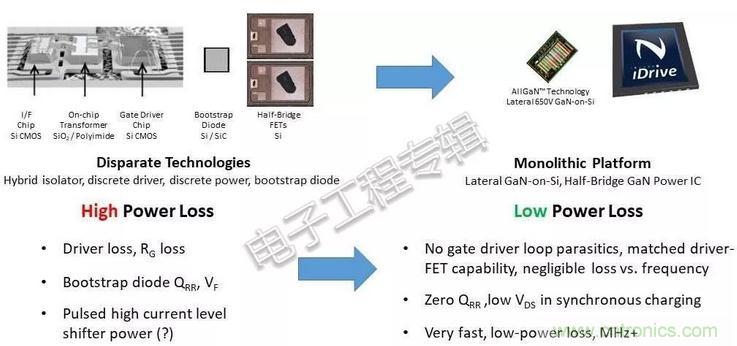 圖4:分離驅(qū)動(dòng)器和分離FET與GaN功率芯片性能比較