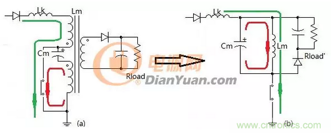 兩個(gè)電路的區(qū)別就在于二極管的接法略有不同,圖(b)這個(gè)電路能達(dá)到更高的效率而且可以實(shí)現(xiàn)軟開關(guān)。