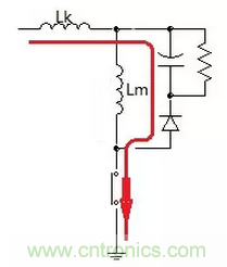 假設(shè)初級(jí)兩線圈耦合的好,當(dāng)開關(guān)關(guān)閉時(shí)上圖中的(a)就等效于圖(b)其結(jié)果為主電感被免疫掉了,換言之電容Cm只吸收漏感能量不吸收主電感能量。