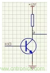 當基極為高電平時,三極管導通,右側的導線接地為低電平,當基極為低電平時,三極管截止,輸出高電平。