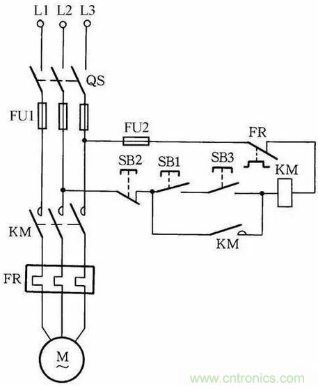 圖中SB2為停止按鈕,在停止時,按動SB2的時間要長一點。否則,手松開按鈕后,接觸器又吸合,使電動機繼續(xù)運行。這是因為電源電壓雖被切斷,但由于慣性的作用,電動機轉子仍然轉動,其定子繞組會產(chǎn)生感應電動勢,一旦停止按鈕很快復位,感應電動勢直接加在接觸器線圈上,使其再次吸合,電動機繼續(xù)運轉。