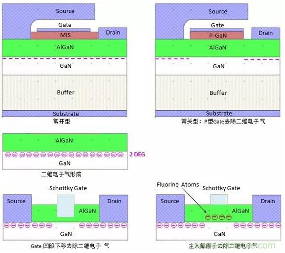 【導(dǎo)讀】這里的一張圖就能讓大家搞清楚GaN功率管的結(jié)構(gòu)及工作原理,常關(guān)型GaN功率管通常稱為增強(qiáng)型GaN功率管,設(shè)計(jì)增強(qiáng)型GaN功率管有四種方法。