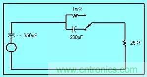 這些實驗數(shù)據(jù)可用其他方法來解釋。發(fā)射最小值(線電流為0的時候)是濾波器無偏置電流時表現(xiàn)出來的效果。峰值發(fā)射與最小發(fā)射的比率,即降級因子,用來衡量線電流偏移量對濾波器實際效果的影響。降級因子較大表明共模扼流圈磁芯完全沒有得到恰當(dāng)?shù)氖褂茫^好的濾波器的“固有降級因子”差不多在2—4之間。它是由兩種現(xiàn)象產(chǎn)生的:第一,60Hz充電電流引起的電感減小(如上所述);第二,橋式整流器的正向及反向?qū)?。共模發(fā)射的等效電路由一個阻抗約為200PF的電壓源、二極管阻抗和LISN的共模阻抗組成,如圖2所示。當(dāng)橋式整流器正向偏置時,在源阻抗、25和LISN共模阻抗之間會產(chǎn)生分壓現(xiàn)象。當(dāng)橋整流器反向偏置時,在源阻抗、整流橋反偏電容、LISN之間產(chǎn)生分壓現(xiàn)象。當(dāng)二極管整流橋反向偏置電容較小時,對共模濾除有一定效果。當(dāng)整流橋正向偏置時則對共模濾除沒有影響。