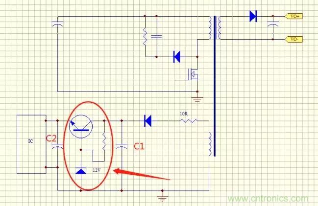 分析下來(lái)沒(méi)有什么大的功耗,消耗了一部分功耗但對(duì)于效率影響很小,比如要是沒(méi)有這個(gè)穩(wěn)壓電路,這個(gè)14V加在IC之上,而IC功率消耗很大一部分是用在驅(qū)動(dòng)輸出之上,IC上的大部分損耗為Vcc*Ig(Vcc電壓*驅(qū)動(dòng)電流),對(duì)于芯片來(lái)說(shuō),Vcc越高損耗就越大。所以加這個(gè)穩(wěn)壓電路沒(méi)有增大多少功耗,只是把本該IC的部分功耗轉(zhuǎn)移到了三極管之上,當(dāng)然主要是要把IC的供電電壓穩(wěn)住。