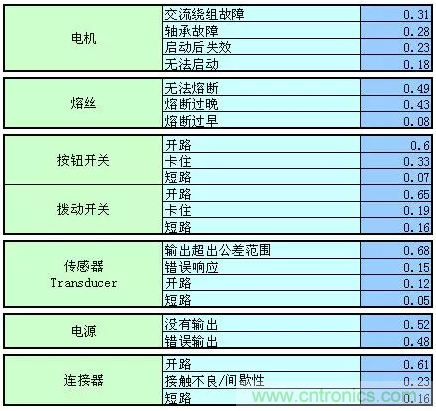 元器件失效模式分布