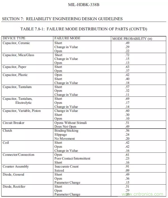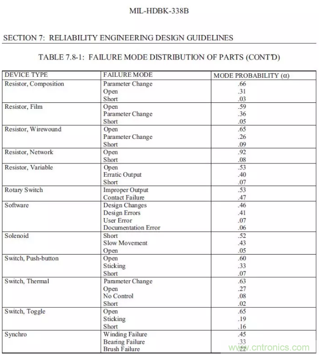 以下數(shù)字僅供參考,本身MIL-HDBK-338B是一份指導書性質的,所有的數(shù)字僅僅具有參考意義。