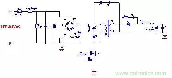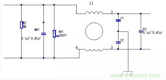 ①輸入端,和共模電感形成濾波器,L和N分別對(duì)PE加;
