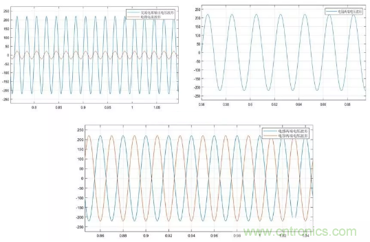 為了更加深入了解串聯(lián)諧振的現(xiàn)象,在matlab/simulink中搭建交流串聯(lián)R、L、C電路。設置交流電源幅值為220V,頻率為50Hz,電阻為10歐姆,根據(jù)串聯(lián)電路發(fā)生諧振的條件,設置L為 0.0318H,C為3.1831e-04F,仿真結(jié)果下圖所示。