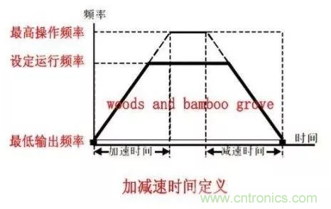 在一些機械加工過程中,為提高生產(chǎn)效率,防止物料浪費,需要電機啟動到指定運行頻率時間要短;停機迅速。為此變頻器都提供此項功能——加減速時間