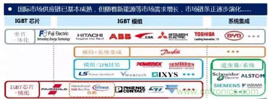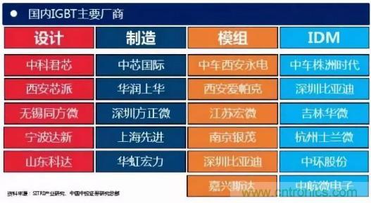 從公司來看,國外研發(fā)IGBT器件的公司主要有英飛凌、 ABB、三菱、西門康、東芝、富士等。中國功率半導(dǎo)體市場占世界市場的50%以上,但在中高端MOSFET及IGBT主流器件市場上,90%主要依賴進口,基本被國外歐美、日本企業(yè)壟斷。