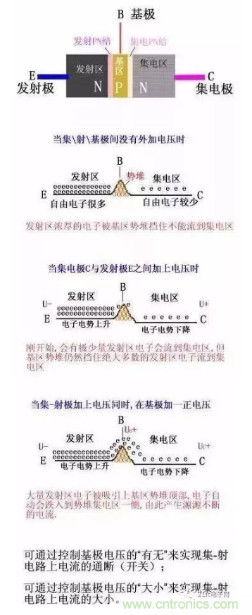 【導(dǎo)讀】這里講解三極管的發(fā)明史、核心結(jié)構(gòu)、結(jié)構(gòu)示意圖、制造流程、結(jié)構(gòu)切面圖、工藝結(jié)構(gòu)特點(diǎn)、電路符號、電流控制原理示意圖、基本電路等,讓大家全面了解三極管。