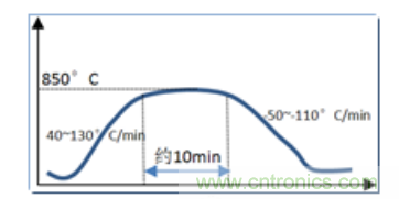 Ag/Pd膏—> 140°C /10min,將Ag/Pd膏中的有機物及水分蒸發(fā)—> 850°C /35min 燒結成型