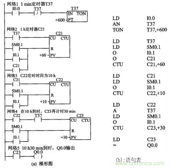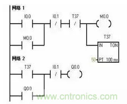 2.延時(shí)停止控制 定時(shí)時(shí)間到,延時(shí)停止。I0.0為啟動(dòng)按鈕、I0.1為停止按鈕。