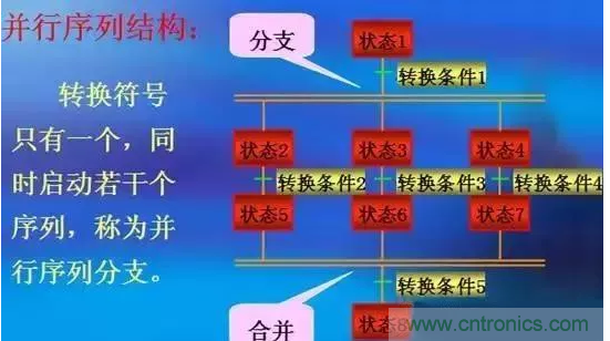 選擇序列的結(jié)束稱為合并,幾個(gè)選擇序列合并到一個(gè)公共序列時(shí),轉(zhuǎn)換符號(hào)只能標(biāo)在水平線之上。