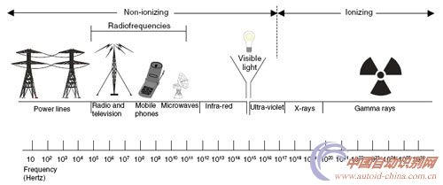 圖3電磁輻射對人體影響研究的頻率范圍(注:引用圖)