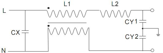 圖1是開關(guān)電源常用的一級(jí)EMI 濾波器的電路。圖中的L1為共模扼流圈,Cx、CY1、CY2為安規(guī)電容,對(duì)于小型開關(guān)電源來(lái)講,由于體積的限制,很多時(shí)候會(huì)將CY1、CY2會(huì)省略掉的,甚至連L1也會(huì)省去。圖中 共模扼流圈L1的兩個(gè)線圈匝數(shù)相等,方向相同,這兩個(gè)電感對(duì)于差模電流和主電流所產(chǎn)生的磁通是方向相反、互相抵消的,因而不起作用;而對(duì)于共模干擾信號(hào),兩線圈產(chǎn)生的磁通方向相同,有相互加強(qiáng)的作用,每一線圈電感值為單獨(dú)存在時(shí)的兩倍,從而得到一個(gè)高阻抗,起到良好的抑制作用。共模電感兩邊感量不相等形成的差模電感L2一起與Cx電容組成一個(gè)低通濾波器,用來(lái)抑制電源線上存在的差模干擾信號(hào)。CY1與CY2的存在是給共模噪聲提供旁路,同時(shí)與共模電感一起,組成LC低通濾波器。共模噪聲的衰減在低頻時(shí)主要由電感起作用,而在高頻時(shí)大部分由電容CY1及CY2起作用。同時(shí),在安裝與布線時(shí)應(yīng)當(dāng)注意:濾波器應(yīng)盡量靠近設(shè)備入口處安裝, 并且濾波器的輸入和輸出線必須分開,防止輸入端與輸出端線路相互耦合,降低濾波特性。濾波器中電容器導(dǎo)線應(yīng)盡量短,以防止感抗與容抗在某頻率上形成諧振。