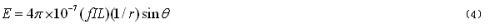 因?yàn)椴钅k娏髁鬟^導(dǎo)線環(huán)路時(shí),將引起差模輻射如式(3)表示: