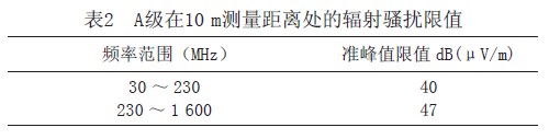 根據(jù)鐵路客運(yùn)專線標(biāo)準(zhǔn)規(guī)定,傳導(dǎo)騷擾限值和輻射騷擾限值如表1、2所示。