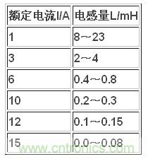 表1 電感量范圍與額定電流的關(guān)系[4]
