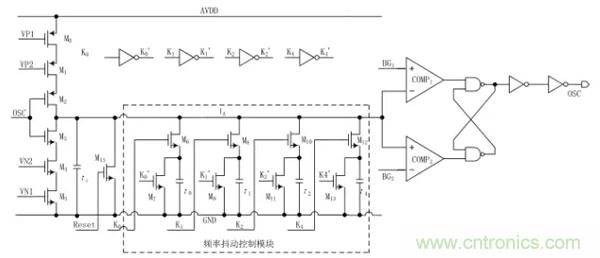 本文所設(shè)計(jì)的周期性頻率抖動(dòng)振蕩器[6,7]的系統(tǒng)框圖如
