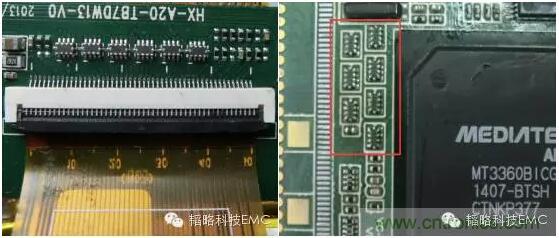 問題點(二): 屏時鐘和DATA數(shù)據(jù)線一起引起的輻射超標;