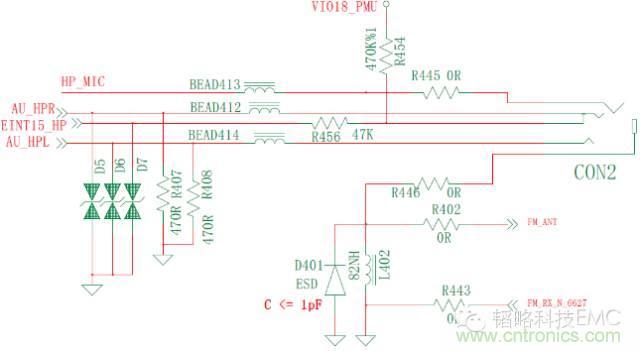 二、問題排查 通過逐一斷開排除,確定靜電是通過HP_MIC腳把IC擊穿,造成產(chǎn)品不開機(jī)。