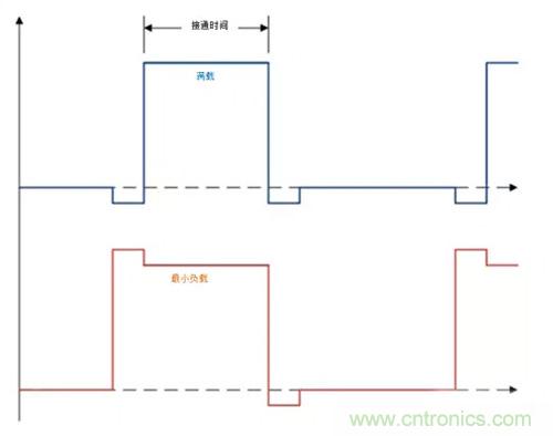圖1:滿載和無負載時的脈沖寬度