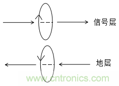 如何用右手定則來(lái)解釋信號(hào)層與地層相鄰時(shí)磁通對(duì)消效果,解釋如下: