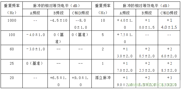 表3:騷擾測量儀的絕對脈沖特性