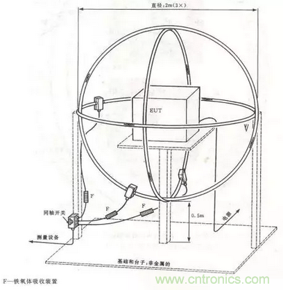 在9KHz~30MHz頻率段,測量騷擾的磁場強度。如果EUT較小,則將其放在大磁環(huán)天線(LLA)中,測量騷擾磁場的感應(yīng)電流。如果EUT較大,則采用遠天線法,用單小環(huán)在規(guī)定距離測量騷擾的磁場強度。