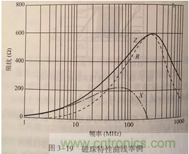 鐵氧體材料是鐵鎂合金或者鐵鎳合金,是一種立方晶格結(jié)構(gòu)的亞鐵磁性材料。這種材料具有很高的磁導(dǎo)率,可以使電感的線圈繞組之間在高頻高阻的情況下產(chǎn)生的電容最小。它的制造工藝和機(jī)械性能與陶瓷相似,顏色為灰黑色。對(duì)于抑制電磁干擾用的鐵氧體,最重要的性能參數(shù)為磁導(dǎo)率和飽和磁通密度。磁導(dǎo)率可以表示為復(fù)數(shù),實(shí)數(shù)部分構(gòu)成電感,虛數(shù)部分代表?yè)p耗,隨著頻率的增加而增加。因此,磁珠的等效電路為由電感L和電阻R組成的串聯(lián)電路,其中X和R都是頻率的函數(shù),如下圖所示: